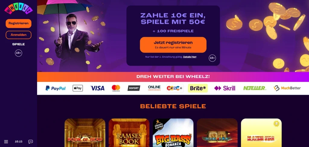 1. Review: Wheelz Casino – Heimat der neuesten Slots